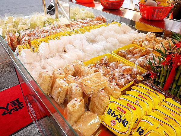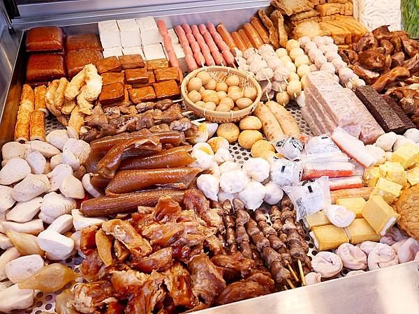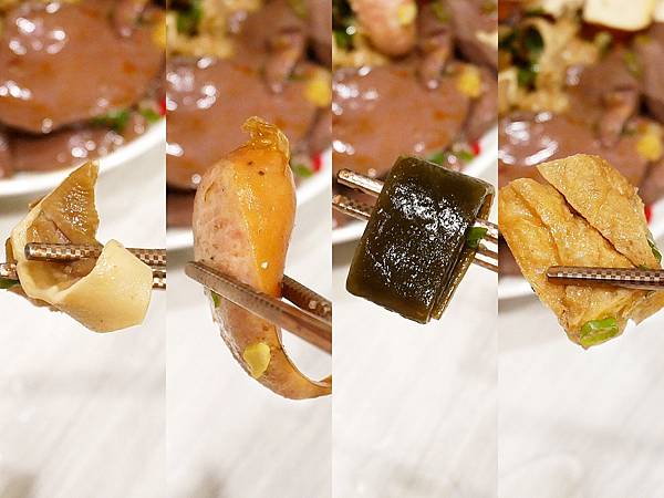 食材一字排開放在櫃內,有微微感受到涼涼的空氣,讓食材能保持在低溫的新鮮狀態。肉食、內臟類看起來都是有滷過的,滷到滿上色很誘人,但店家的肉食、內臟都是用秤重計價,通常我比較不愛秤重的,很容易不小心就夾到超出預算金額。