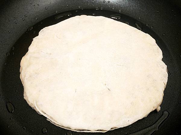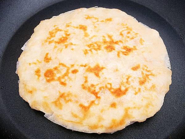 靜香用平底鍋煎,加點油熱鍋,轉小火並放上從冷凍拿出來的月亮蝦餅,記得不要太頻繁翻動,可以稍微用鍋鏟翻一角看顏色,如果轉金黃色就可以翻到另一面煎,煎到雙面都上色就可以起鍋囉!
