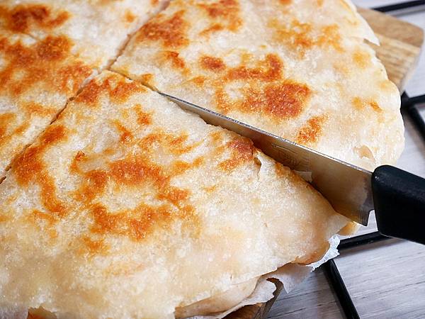 煎到兩面金黃的月亮蝦餅可以看到滿液出來的蝦肉,視覺感有點驚喜! 湊近聞立刻能嗅到濃濃蝦肉的海味,濃郁十足相當誘人。