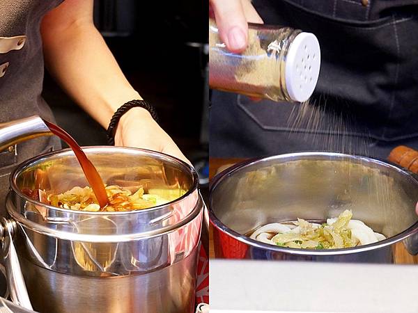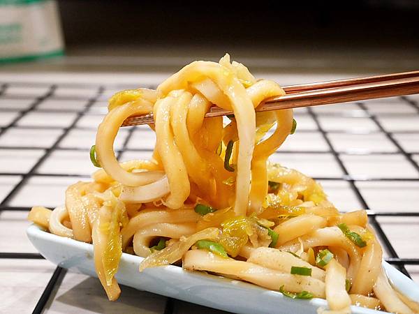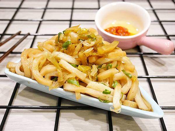 烏龍麵還蠻Q彈,搭配上店家特調的滷汁還有柚子胡椒味道很迷人,麵條緊緊抓著醬汁,微鹹甜很耐吃,加上酸菜、青蔥很加分,我滿喜歡!
