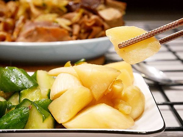 筊白筍吃起來蠻爽口,入口微軟脆,為了保留口感沒有滷到入味,整體還是以筊白筍的味道為主!