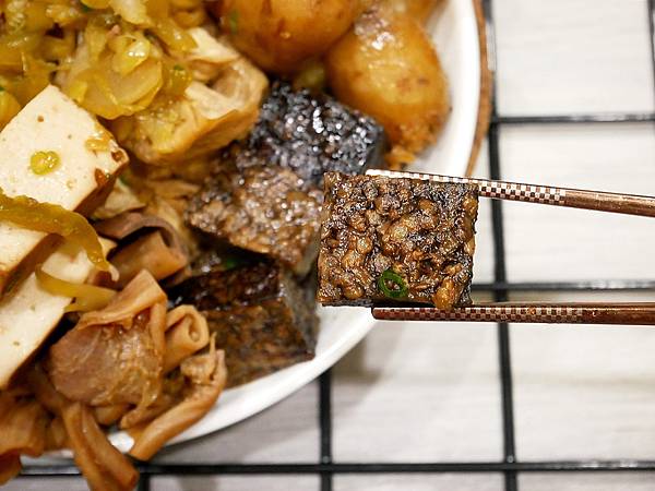 豆腸是腐皮捲成的,入口非常層層疊疊,夾縫內吸附滿滿滷汁,咬下超多汁味道棒,而且口感相當細緻完全不會乾,相當好吃!
