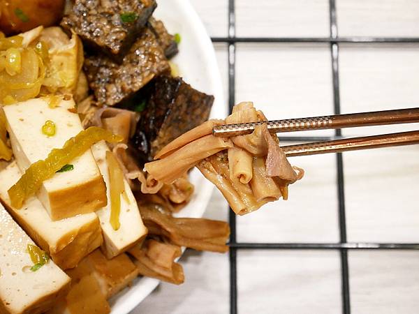 百頁豆腐也很推,豆腐完全不乾,軟Q口感我很愛,滷到滿入味而且質地細緻不粗糙,這個也超下飯。