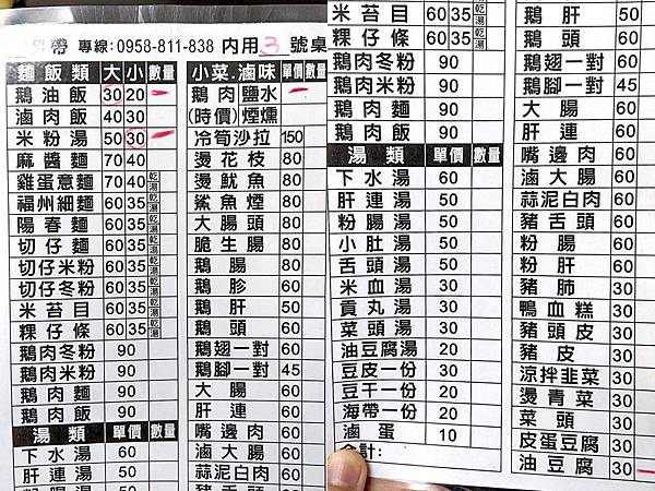 最新菜單可參考連結 : 菜單點我 。點餐的時候老闆會讓我們挑部位和選要不要去骨,價格似乎不大一樣,想了解可以進一步詢問老闆。