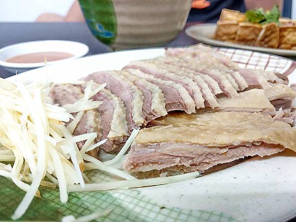 鵝肉我愛但不常吃,所以也不知道這樣的價格算便宜還是貴,但他們家的鵝肉很好吃,所以偶爾點一盤我覺得還OK! 煙燻鵝肉的香氣有但不會太重,沒有壓過鵝肉味,我點去骨的所以不用額外剔骨很好入口,肉質挺有咬勁又不乾,口感和味道都滿好吃,皮QQ的相當有嚼勁我喜歡,鵝肉表現不錯,搭配醬汁味道更棒,還滿推薦!