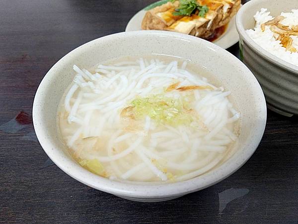 米粉湯是北部的粗米粉,湯頭鹹香還帶點芹菜的味道,調味不過重表現還不錯。