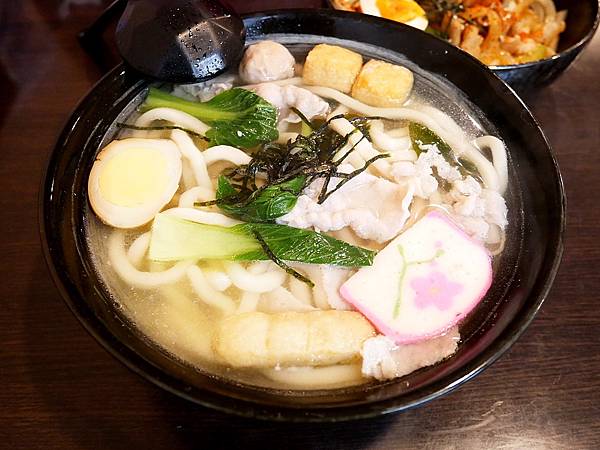 單碗的份量不算多,如果食量大一點的男生建議加麵比較吃得飽,加麵可以選不同麵體很棒耶,可以點一次就品嘗到兩種麵的口感。湯頭很清爽,昆布的味道還不錯,裡面搭配肉片、火鍋料還有半顆滷蛋,雖然出現滷蛋有點特別,總覺得跟日式小小違和但不難吃。烏龍麵放在湯裡面一下依舊Q,口感真的不錯,而拉麵是細的,麵的香味氣我喜歡,整體來說不會難吃,但因為是最基本的湯頭,也不太驚豔,但麵條是好吃的!