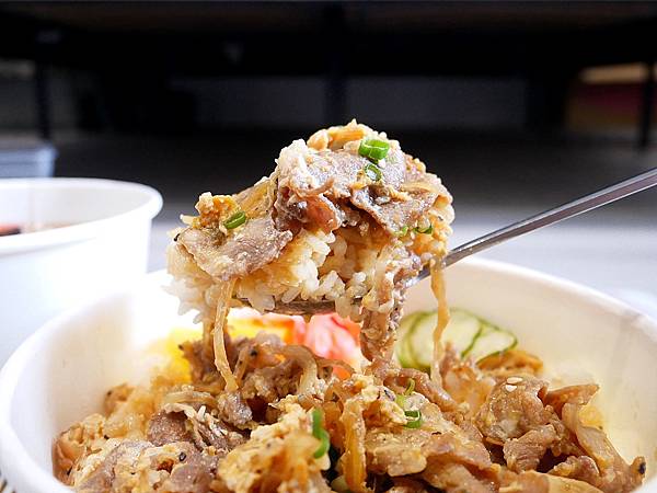 牛丼的肉是選用油脂比較豐富的部位,入口軟嫩不會油膩,脂肪讓肉片更好入口,男友還蠻喜歡,但我還是喜歡瘦肉多一點,偶有幾片肉的邊邊帶筋比較沒那麼好咬,但大致上口感還不差,而且肉真的超入味。