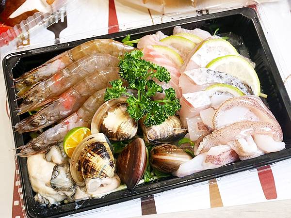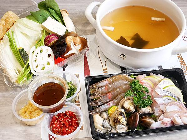 火鍋打包回家吃原來這麼簡單,店家會把蔬菜用盒子裝,即使經過回家路上顛簸也沒搖到亂掉,而海鮮打包也滿用心,不只用較密合的容器,而且還會放冰塊保持低溫,還會再額外用袋子包裹,回家享用絲毫不受影響。