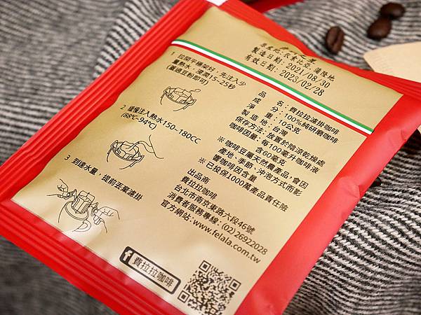 目前費拉拉有買一磅送一濾掛的活動,濾掛的口味會隨季節做更動,這次收到來自衣索比亞的非洲之星,這款是中焙偏深的滋味,口感比較豐厚些。濾掛式方便攜帶,不管是在辦公室還是宿舍都能快速享有一杯美味的手沖咖啡!