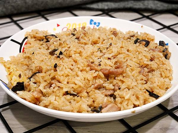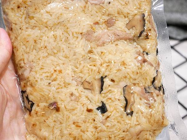因為真空包裝的關係,打開油飯會發現是定型的狀態,加熱前我把油飯全部剝散開來,讓每一粒米可以均勻受熱。