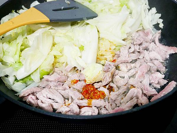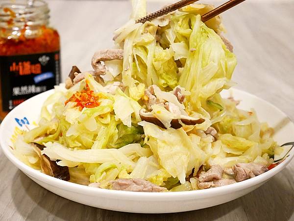 盛盤之後最上頭再淋點辣椒提提色,看起來就很開胃,兩勺的辣度搭配半顆高麗菜的量非常剛好,夠香夠辣但不刺激,一點也不輸熱炒店的調味!