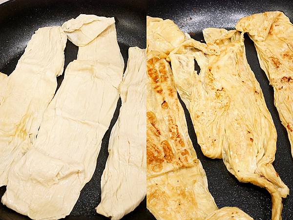 靜香很喜歡吃脆脆的豆包,但外面的炸豆包含油量太高,所以直接買生豆包回家煎酥或是用氣炸鍋烤酥更沒負擔,靜香是用平底鍋乾煎,煎到兩面轉成金黃色就可以剪成小段開始享用,剛起鍋比較酥脆,如果放涼會有點韌,可以再加熱一層恢復口感喔,豆包沾點果然辣醬非常夠味,完全沒有額外調味就超好吃~當成晚餐或是零食都適合!