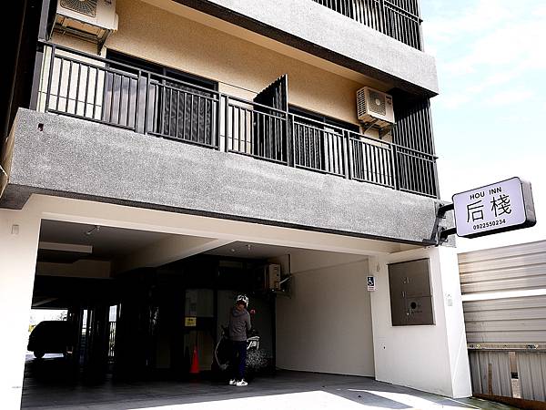 「后棧旅店」的外形比較樸素,就跟房間內的環境一樣,雖然不是走華麗路線卻很舒適。門口提供寬敞的空間停放機車,裡面也有汽車的停車位,對於旅遊的人來說非常方便,重點是有遮蔽物完全不擔心雨天。
