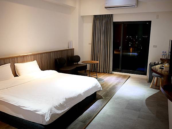 雙人房就很寬敞,這邊是房間內的部分,此外還有陽台以及衛浴,格局相當不錯,置物空間、插孔也夠多,而且外頭不會太吵雜加上又是氣密窗,一較好眠很適合旅客入住。