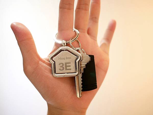 當天入住三樓的E號房,房間的門是用鑰匙開啟,而感應扣則是使用於大門。