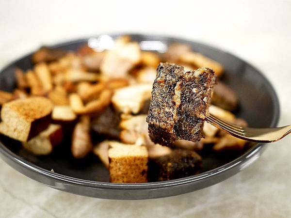 五花肉是用秤的,煙燻的香氣還不錯,QQ的皮加上嚼勁十足的肉,不會太油膩超下酒,但肉質對我來說略硬一點。