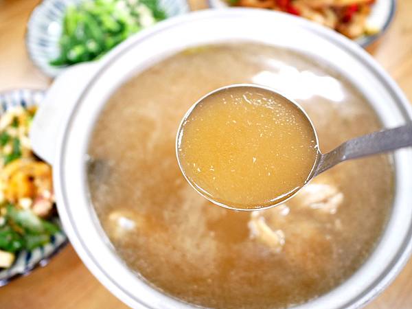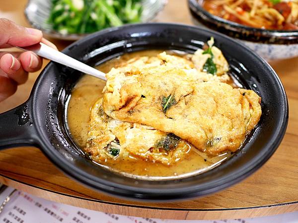 這道是店家的招牌菜之一,雖然麻油味不像麻油雞那麼厚實,但清爽的麻油香氣,結合炒薑、九層塔和蛋的味道超合拍,蛋浸泡濕潤之後依舊好吃,忍不住連湯都掃光。