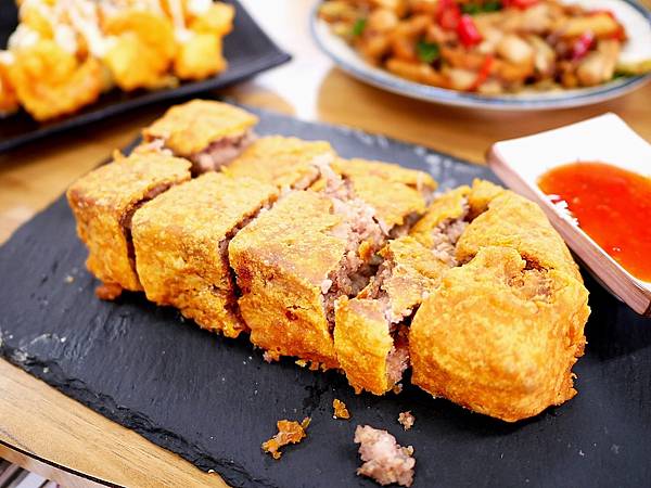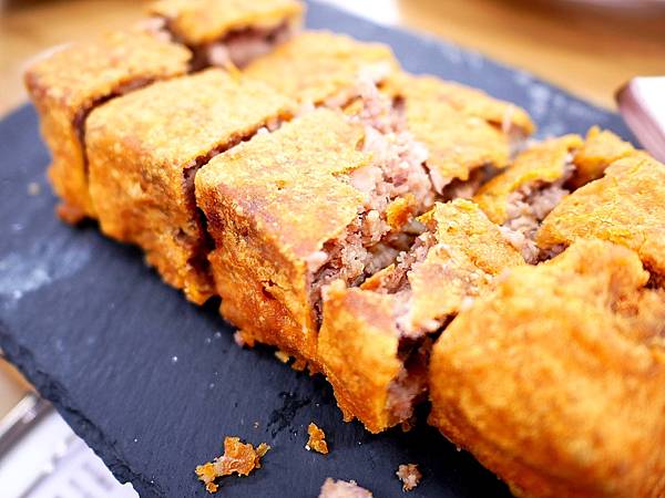 頭一次吃芋頭鴨,表面炸到很酥脆,卡滋卡滋口感還不賴但記得趁熱吃最美味,好險冷掉也不油膩。芋頭非常厚但帶皮鴨肉比較小塊,主要還是吃到芋頭的香氣和口感,因為比較多芋頭所以沒有沾著旁邊的泰式甜辣醬會稍微偏乾,搭配醬汁一起吃味道和口感都會比較好。