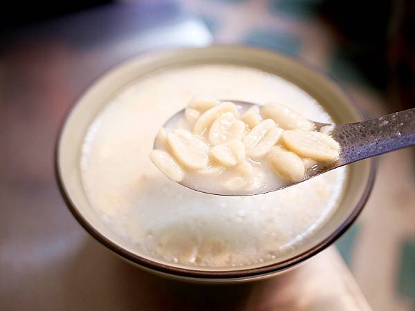 既然店名是花生仁湯,肯定要來上一碗,但不知是不是因為加了紫米,吃起來微偏鹹而非甜的,花生的顆粒飽滿而且燉煮到非常軟綿好入口很好吃,紫米給得不少,保留脆度我超愛,這個搭配還不錯,就是比預期多了點鹹度,剛入口的時候有點疑惑XD
