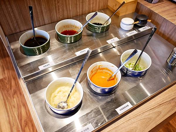 「麥克麵線」的店內環境還不錯,但座位數並不算多,餐具、調味料都集中放在店中間的位置,餐後也要自行把餐盤收到集中處。