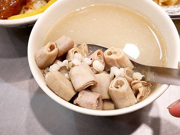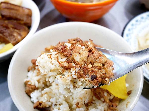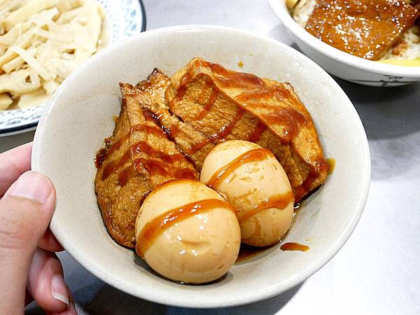 店家的魯肉飯還滿好吃,雖然肉量不算非常多,但是完全不會肥的肉很耐吃,而且肉汁給得很剛好,每一粒米飯都能拌勻,所以吃起來香氣足而且夠濕潤,整體還不錯。