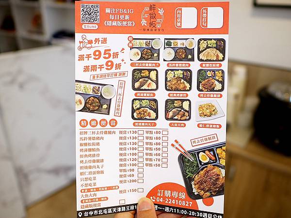 先附上菜單,「鮮做飯·一間精緻便當店」也有「只想吃菜」和「不想吃菜」的便當,或針對追求高蛋白的朋友推出「大魚大肉」,每天也有隱藏版口味,可以上店家粉專接受訊息~