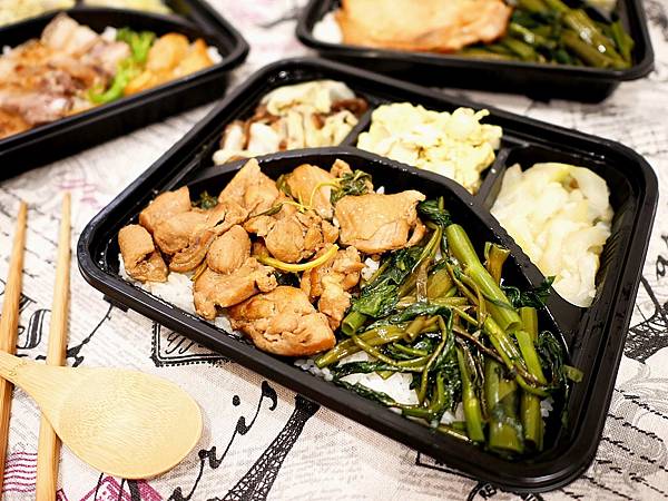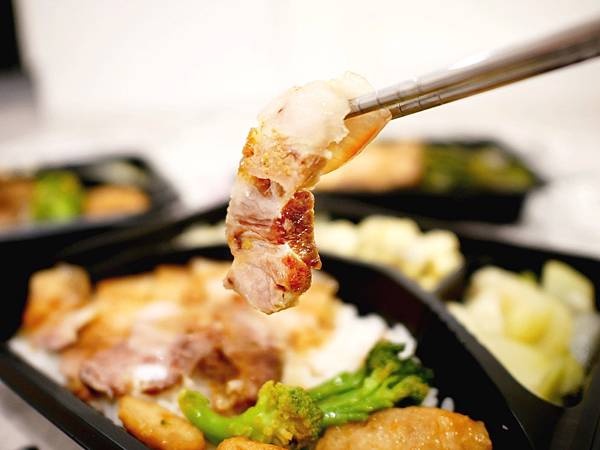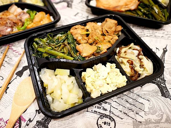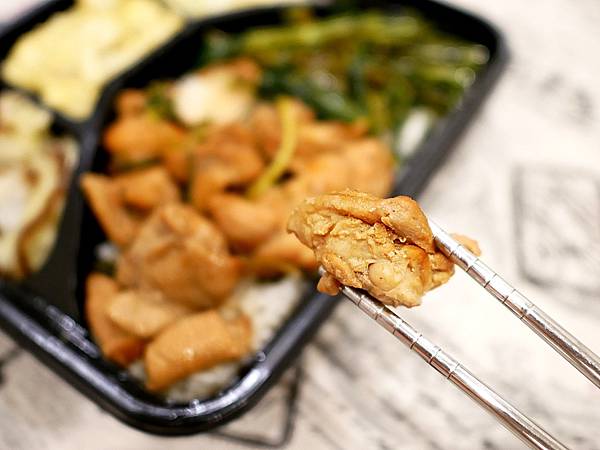 便當大部分口味都是搭配四種配菜,青菜的調味不厚重,吃起來也不油膩,算是清爽下飯的配菜,雖然不能自己挑擔表現還不錯。