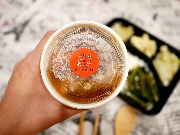 「鮮做飯·一間精緻便當店」每天都會準備湯品供顧客享用,靜香去的當天是排骨筍子湯,裡面的筍子超多完全不小氣,隨便撈都一大匙,不知道每天的湯品是不是都不同,但這個料量我很滿意~