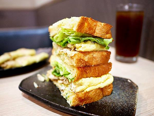 丹麥吐司份量還不小,即使放冷麵包也不會乾有點驚喜到,蒜香十足的醃雞肉雖然不厚實,但是口感軟嫩好咬,吃起來不乾柴又夠味,裡面搭配嫩蛋口感相當濕潤,麵包上應該塗了奶油,大口咬下陣陣奶油香超加分,這個口味的丹麥吐司視覺感比較沒看點,但味道並不差。