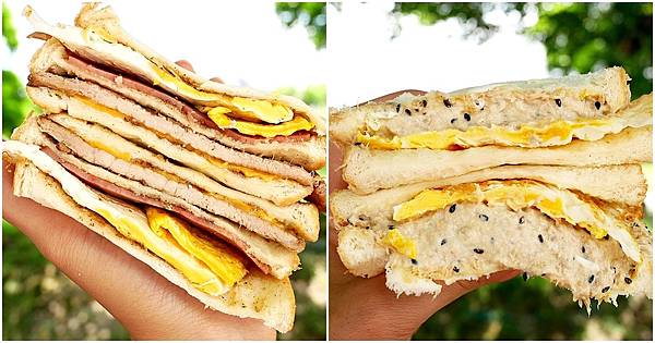 「晨吉司漢肉排蛋吐司」大家有吃過嗎? 靠著攤車的經營模式拓展到全台灣,標榜以鬆綿柔軟的晨光吐司夾入大塊肉排,雖然沒有提供內用空間,但快速出餐這點正好提供匆忙又擁擠的上班族一個更快速的選擇,因此在早餐屆擁有不少死忠的粉絲,「晨吉司漢」人氣主打的是肉蛋吐司,但靜香卻更愛他們的鮪魚蛋和總匯吐司,份量足而且料多味美,其中鮪魚蛋我個人大推,抹上厚厚一層鮪魚醬濕潤不膩口,裡面的黑芝麻讓口感更上一層,視覺味覺都驚喜!