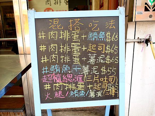 先附上菜單,晨吉司漢的吐司會額外撒上一些黑胡椒,如果是小朋友要吃的,記得提早告知店家喔! 除了菜單上的品項之外,店家旁邊的黑板上也有混搭吃法,喜歡嚐鮮的朋友可以試試~
