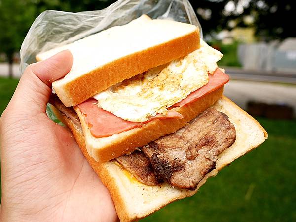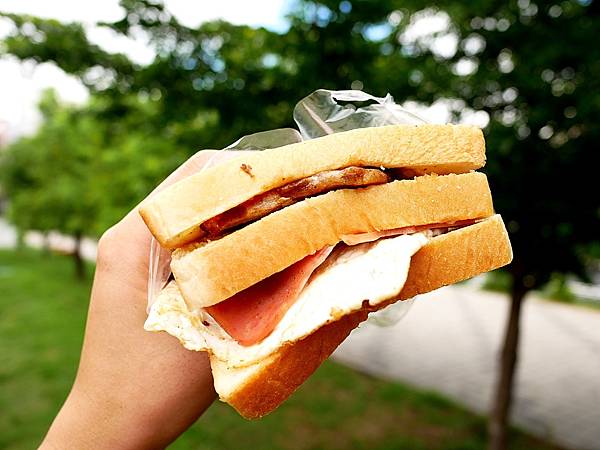 肉蛋吐司是店家的招牌,厚實大塊的肉片鹽漬到鹹香入味,靜香有留意老闆娘不只擺入一塊肉,而是又剪半塊補上,力求讓客人每一口都能吃到肉片相當用心,搭配起來味道也不錯,但如果食量許可,更推薦總匯,超豐盛~