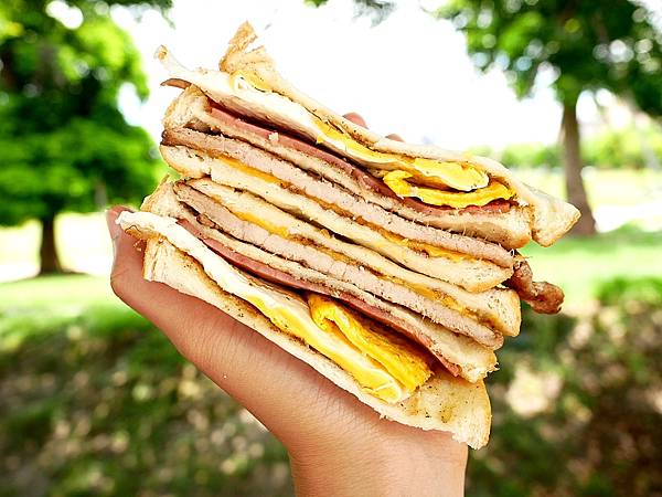 食量大的朋友選總匯就對了,三大塊吐司搭配肉片、蛋、起司和一款自選的配料超豐盛。