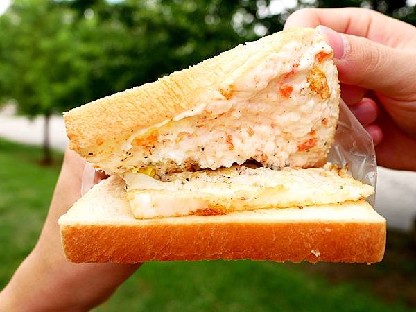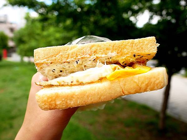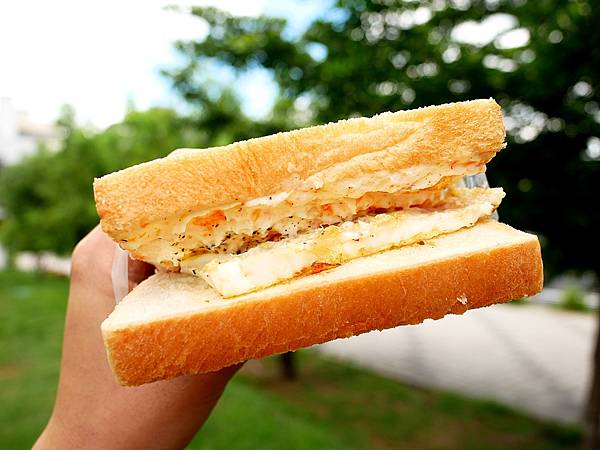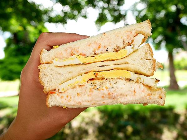 沙拉蛋吐司是很多人夏天喜歡的品項,馬鈴薯和紅蘿蔔切到非常細,不需要費力咬而且入口相當濕潤,沙拉質地綿密不厚重,吃起來也不會太油,搭配鬆軟的吐司再加一顆蛋,份量很夠~