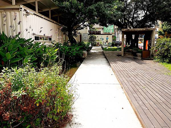 靜香喜歡從路口處向餐廳拍攝的角度,利用旁邊的樹叢掩蓋掉多餘的人車,就像到了山上的林中步道一般,旁邊還有生態池可以觀賞,看很多爸媽會在餐後帶小朋友來賞魚看烏龜,甚至有小朋友還拿起飼料餵養,詢問之下才知道這是店家提供的,只要在店家消費就能至櫃檯索取魚、烏龜飼料包,可惜我們吃完太晚,靜香妹要續攤,所以就沒有去餵烏龜了,不然還挺有趣的。