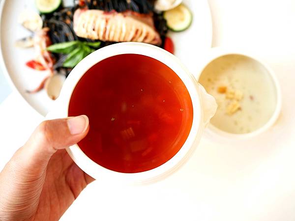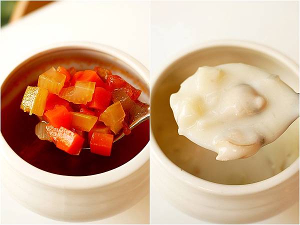 羅宋湯料給超多,湯頭很清甜不會沒味道,喝起來清爽耐喝不會太油,這碗我個人很喜歡。蛤蜊巧達湯的味道非常濃郁,裡面滿滿綿密馬鈴薯和洋蔥香氣,還有蛤蜊跟培根相當有料,適合重奶控享用,這碗我弟超愛。