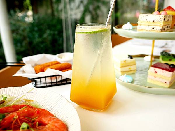 夏天就是要喝氣泡飲,這杯金黃色的漸層超級美,底下的鳳梨果醬味道還不賴,攪拌均勻後能品嘗到淡淡的鳳梨香很清爽,不會太酸甜度也挺剛好,用來搭配鹹食很解膩。