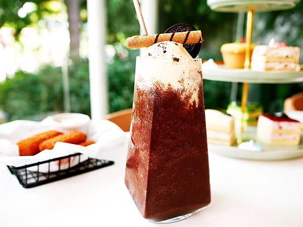 這杯是我弟專屬,每次跟他聚餐都是喝OREO巧克力,這杯是冰沙口感很適合酷熱的夏天,上頭還有冰淇淋和餅乾做點綴,冰沙的巧克力香氣非常濃郁,喝起來甜度不會太高相當順口,還挺適合下午茶來一杯。