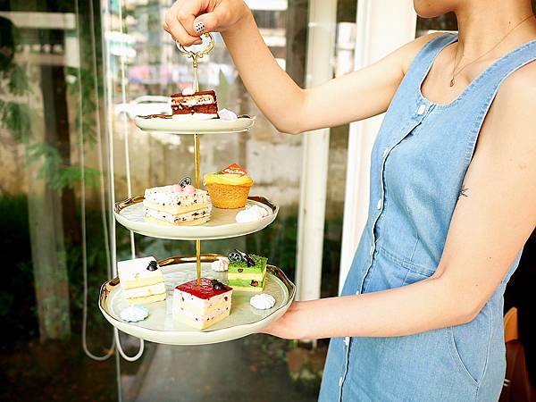 「林森67」推出下午茶套組,三層甜點搭配兩杯飲料售價 $598,內容物包含甜點架、一壺熱茶和一杯拿鐵~