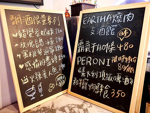 先附上菜單連結 : 菜單點我,除了菜單上的品項之外,「Eartha燒肉餐酒館」不定期推出新品或限量產品,資訊都會公告在小黑板上。寵物鮮食有不少毛孩爸媽都會點,聽說是和牛大餐,感覺既奢華又厲害非常值得期待。