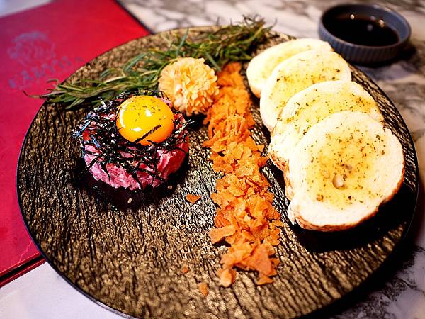西式生牛肉(達旦)佐軟法起司麵包 $580