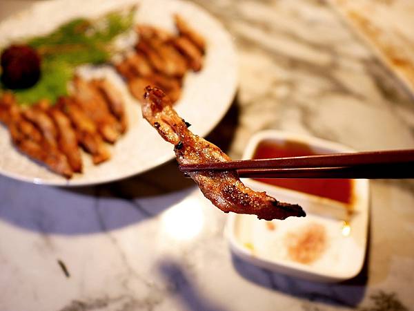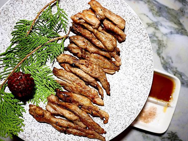 雞松阪切成條狀很好入口,烤完完全不會乾,中間的部分有點油脂但不油膩,反而還帶點脆感,還以為咬到軟骨,那其實是適量油脂,意外增添口感很加分。