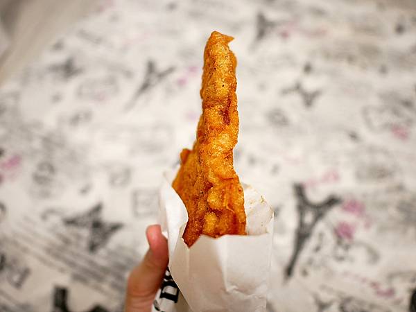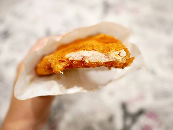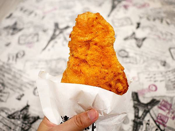 隔了一週去換送的那份雞排,決定試試另一種麵衣,就挑了我最有興趣的起司嚐嚐。哈韓起司限定脆皮麵衣,size比香酥雞排小不少,不確定是這一塊還是都這樣,脆皮的麵衣比較厚硬,只比派克雞排的皮稍薄些,肉質不乾柴,是比較有彈性的口感,這款調味微鹹辣,起司香挺濃郁但偏重口味,一片雞排是極限。