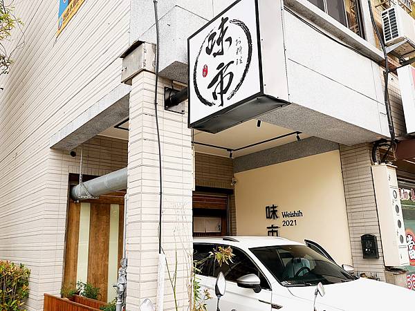 「味市お料理」位在中清路上,低調且不算寬敞的門面,讓我開著導航都差點過頭,這邊大約可以停放兩台汽車,周邊機車位倒是不少。濃濃木造日式風格的外觀相當典雅,雖然低調但非常有質感。