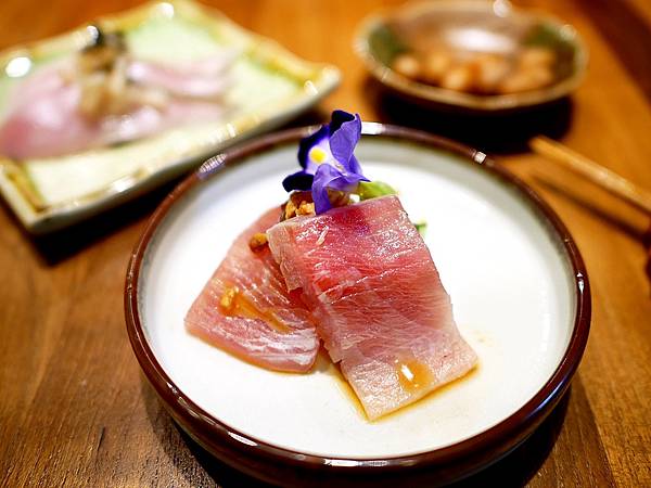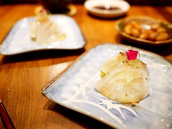 「味市お料理」的魚比較特別,不像一般日料店選用現流魚,而是將魚手工熟成,大部分的人對海鮮的觀念就是新鮮最好吃,但其實有些魚肉經過熟成之後會比現流魚的風味更豐富,因為熟成過程能把魚內的纖維分解成天然糖分和谷氨酸鹽,提升魚的味道,意外上了一課。