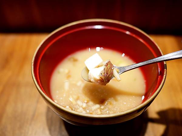 「味噌湯」是常見的日式湯品,但「味市お料理」的味噌湯卻不簡單,用魚骨熬製,並搭配3款日式味噌煮成,濃郁的味增香氣很耐喝,而口味卻不會太鹹,裡面有細緻的魚塊、菇類和豆腐,當成收尾的湯品非常溫順。