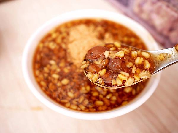 這是我第二次吃綠豆蒜,之前曾經在屏東吃過冰的,沒想到也能吃熱的,而且搭配黑糖、桂圓相當適合女孩們每個月來一碗。