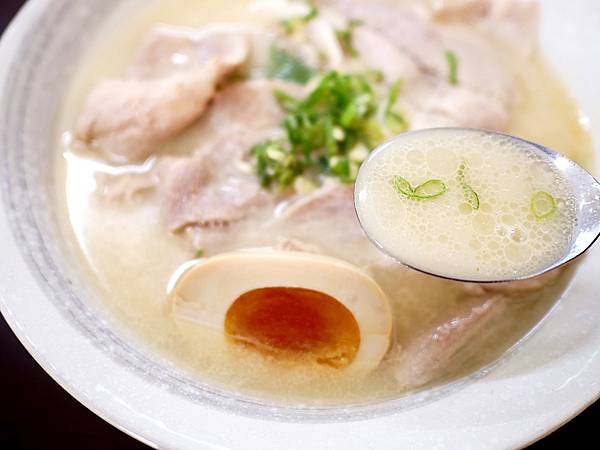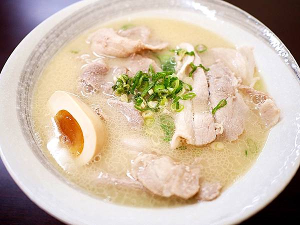 豚骨湯頭還挺清甜,非重口的日式豚骨,是比較清爽的台式豚骨湯頭,裡面加了半顆溏心蛋,蛋的質地滑順不會太鹹,豬肉份量還不少,而且口感不乾澀,是帶有Q度的肉片,烏龍麵有彈性,算是整體表現不差的湯烏龍麵。