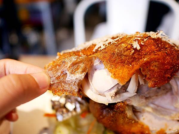 肉汁清甜完全不油膩,而雞肉口感Q彈不乾澀,就連最容易乾柴的雞胸肉都很多汁好吃,主要風味來自迷迭香和紅椒粉味道不厚重,淡淡提香我喜歡,其中炸烤過的雞皮相當薄,多餘的油脂幾乎都烤化了,薄脆口感讓人愛不釋手,這個size的春雞就算三個人分食都不嫌少。